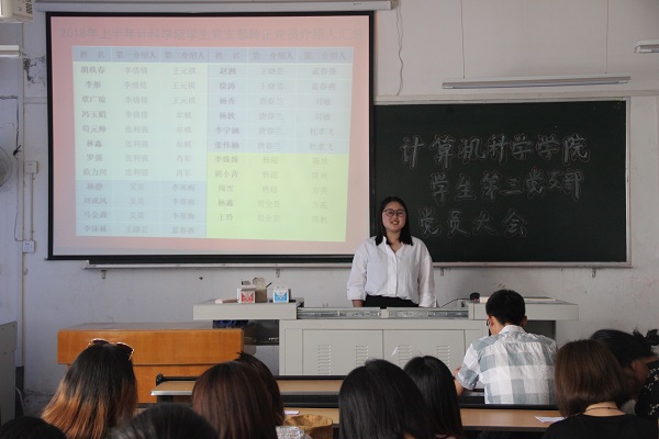 会议首先讨论了胡玖春等预备党员转正事宜,申请转正的预备党员汇报自己在预备期间发挥党员作用和工作等各方面情况,再由入党介绍人介绍预备党员在预备期间的各方面表现情况,并对该同志提出能否转为正式党员的意见,然后由总支大会进行讨论并形成决议。接着,会议讨论邓成琴等入党积极分子发展对象的入党事宜,申请人汇报自己对党的认识、入党动机、本人履历等情况。再由入党介绍人分别介绍对申请人的培养考察情况,与会党员对申请人能否入党发表意见。最后,所有新发展为预备党员的同学起立,完成了入党宣誓。