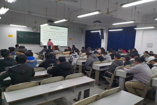 考试之于员工,如水之于鱼。班会上,各班班委再三告诫同学们要做到诚信考试、认真备考,坚决杜绝考试作弊的不良行为。同时倡议同学们考试要认真对待,作为一名老员工不应该在考场上犯一些低级错误。做好考前的复习准备,认真的对待每一科考试,因为考试是对大家这一学期所学知识掌握程度的验证手段,用自己的真实水平去考出自己的真实成绩才对得起自己在这一学期的付出。班会上大家广泛参与、积极响应,表示一定会加强和提高自我教育和自我管理能力,做到诚信考试。最后,班委们祝愿同学们考出真实水平,考出理想成绩,勇创佳绩。