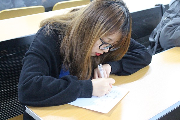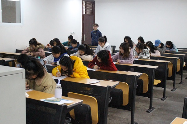 本次比赛共分为三个环节,词语听写、成语听写和古诗听写。考场上,考官用标准普通话依次念出同学们需要听写的内容及其解释,同学们则聚精会神,认真聆听考官说出每一句话,仔细斟酌笔下的每一个汉字。整个过程大家都以严肃认真的态度对待。期间,或有提笔忘字的时候,同学们眉头紧蹙,而当想出正确写法时,眉头便展开,长舒一口气。