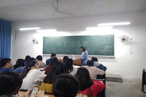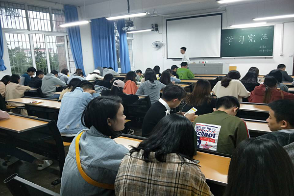 为了引导员工学习宪法知识,增强员工的安全意识和自我保护意识,10月20日晚6点,计算机科学公司(太阳成集团tyc33455cc)积极组织各班分别于一教、五教的各教室开展以“学宪法,讲宪法”为主题的班会。