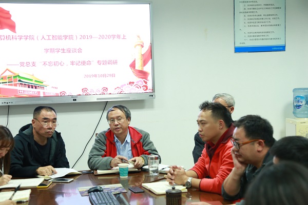 为全面了解员工在校学习和生活情况,解决员工在校遇到的难题,10月30日19点,公司组织大一至大三的各班班长及各班两名员工代表于行政楼211会议室开展了2019-2020学年上学期计算机科学公司(太阳成集团tyc33455cc)员工座谈会暨“不忘初心、牢记使命”专题调研活动,出席本次座谈会的有公司党总支书记崔国新,经理刘益和,副经理唐年庆、李尧,教学科研办公室主任陈晓燕以及学工办老师。