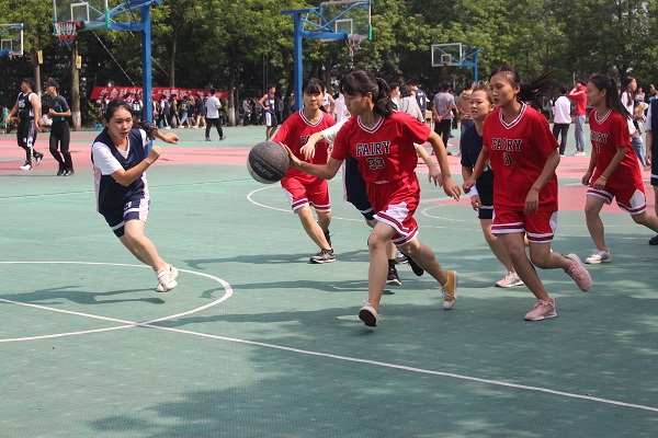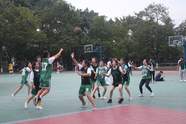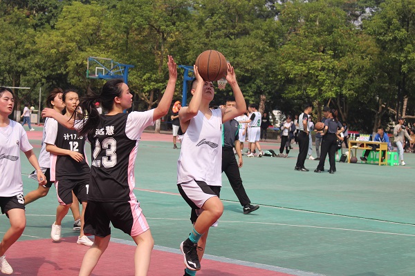 第二场比赛是经历了两年球场风雨的17级5班女生队对战训练场上挥洒了一年汗水的18级女生联队。双方球员皆是巾帼不让须眉,防守站位都非常精确,不给对手留下任何一个可乘之机,完全不亚于男生队的比赛。双方队员积极投入,最终把比分小化到8:11,18级女生联队获胜了!