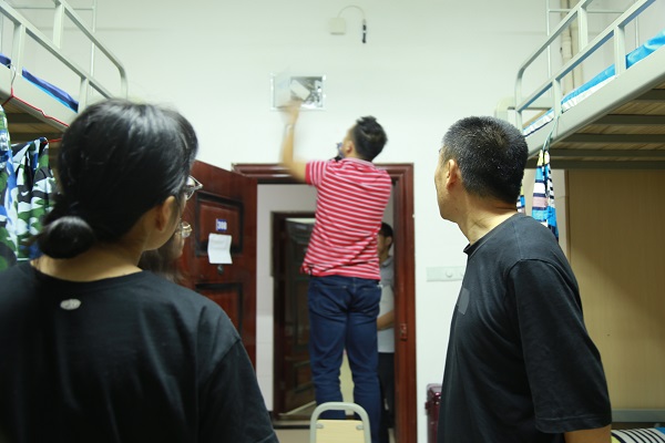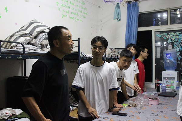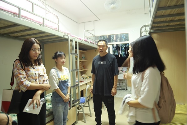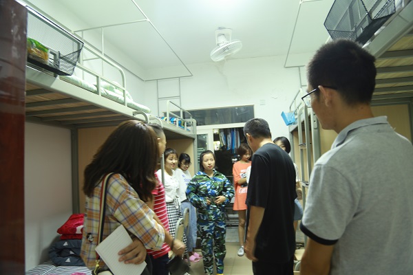 8月31日晚上七点,公司党总支书记崔国新,学工办吴昊老师、杨超老师、张小梅老师,深入公司大一男生寝室实地检查2019级新生宿舍安排工作,9月1日晚八点,老师们又检查了公司大一女生的寝室入住情况。