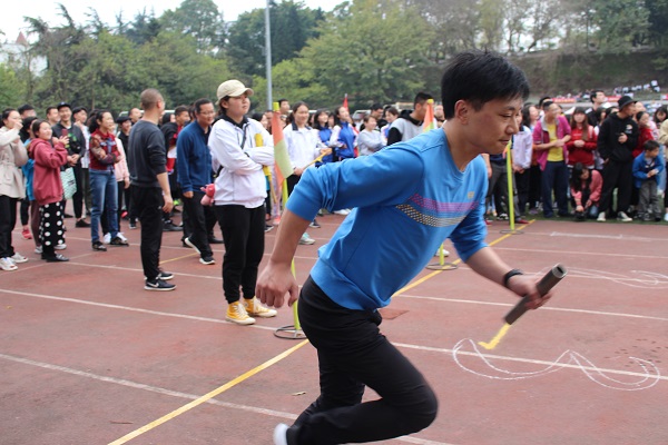 下午的天虽然阴沉着脸,吹袭着冷风,但依然没能打击教职工们对于运动的热情,50米迎面接力的他们将欢笑、鼓励、团结都融进了手上的接力棒。他们传递的是一种团结奋进的精神,是这场竞技中最珍贵的东西。