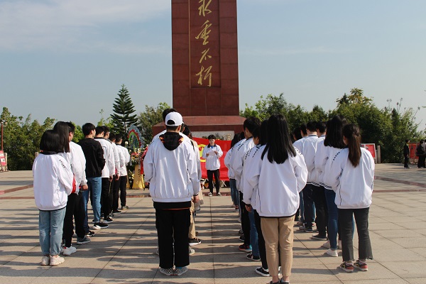 5日早上七点整,全体同学于西区图书馆集合点名,然后自发前往靖民。九点整,活动正式开始。怀着对先烈们的敬畏和怀念,他们手持白菊于革命烈士纪念塔前矗立,神情肃穆。活动第一个环节,员工代表蒋洲在塔下宣读誓词并为大家讲解了部分先烈事迹,先烈虽已故去,但他们的事迹,他们的精神,都将永远存留于我们心中。第二环节,由员工代表带领全体同学向先烈们默哀三分钟。生命即使消逝,但尊重依然在,对生命的敬畏也依然在。默哀结束,进行第三环节,献花。所有同学有序的献上自己手中的白菊,留下我们的哀思。哀思虽已留下,却带走了革命烈士永垂不朽的爱国激情。为了让同学们更加了解先烈们的事迹,在最后一个环节中组织同学们参观了烈士事迹展板以及烈士墓碑,看着展板上一张张年轻的面孔,不由得感慨时光残忍,将他们永远停留在青春里。