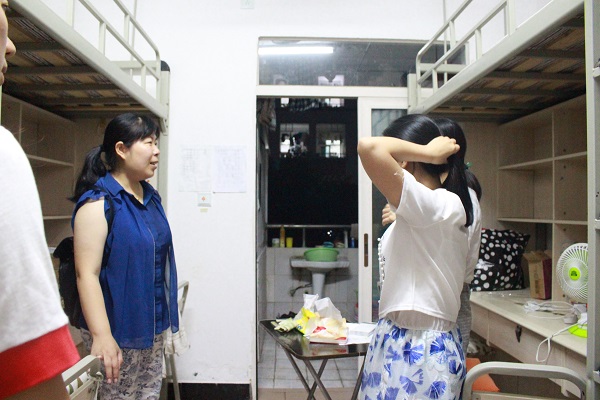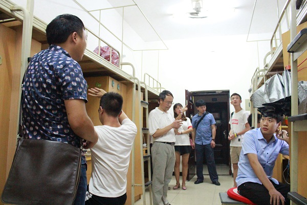 离开寝室时,刘经理和李倩倩老师还不忘提醒同学们早点休息,注意第二天的毕业典礼暨授位仪式不要迟到,毕业后要经常和老师、同学联系,常回母校来看看。毕业班的同学也纷纷来到走廊上同老师们道别并表达感谢。