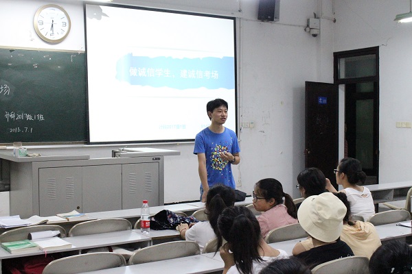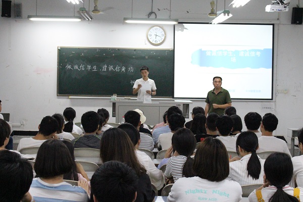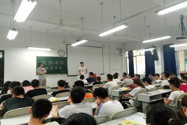 班会伊始,各班主持人通过视频、ppt等方式向同学们讲解了考试作弊的惩罚,宣读了诚信考试倡议书,向大家认真介绍了公司对于严肃考风考纪的各项政策,以及对于关于考试安排程序,考试管理,补考重修等各种问题,并结合以往公司中发生的关于考试中出现的各种问题及处理方法,告诫大家要认真对待考试。
