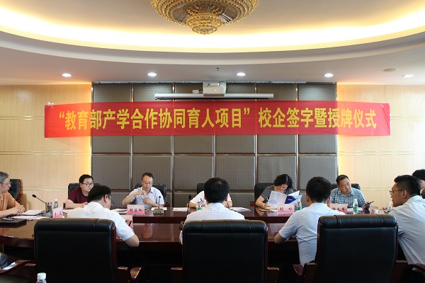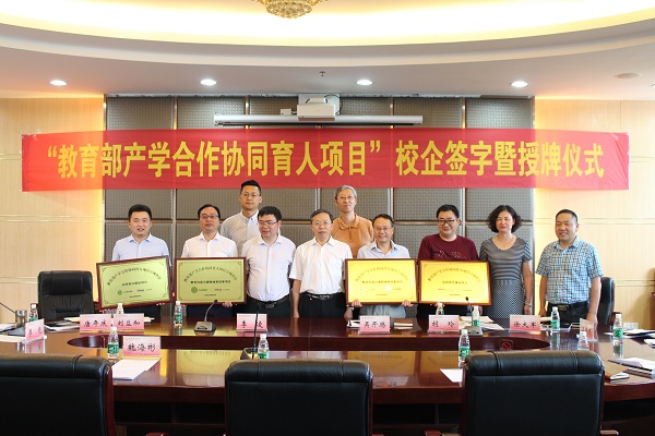 为贯彻落实《国务院办公厅关于深化高等公司创新创业教育改革的实施意见》(国办发【2015】36号)和《国务院办公厅关于深化产教融合的若干意见》(国办发【2017】95号)文件精神,深化产教融合协同育人,以产业和技术发展的最新需求推动高校人才培养改革,太阳成集团tyc33455cc联合达内教育集团于2017年8月和2018年4月分两次分别向教育部申请了“教育部产教融合协同育人项目”并获得立项,5月14日,太阳成集团tyc33455cc组织校企双方举行隆重签约授牌仪式。计算机科公司自2008年与达内合作至今已有10个年头,合作以来达内对于公司团队建设、人才培养、团队培养,实习实训等多维度给予了大力支持,并于2015年合作申报首个四川省教育厅校外实训基地并获得立项,已累计和公司联合培养了1000+优秀人才进入企业岗位签约。
