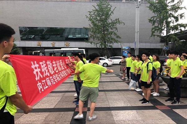 早上7点,同学们便带着慰问品、食材、鲜花还有其他物资集合在了西区图书馆门口,在一个简短的签名仪式以后,一行人来到了东兴区双才镇敬老院。据了解,该敬老院里住着的都是五保户老人,没有儿女且平均年龄在73岁。知道有员工和老师的到来后,老人们开心的纷纷走出屋外,一些腿脚不灵活的老人则由员工搀扶着来到了敬老院的小广场上。不久后,由同学们为老人精心策划准备的文艺表演就开始了。