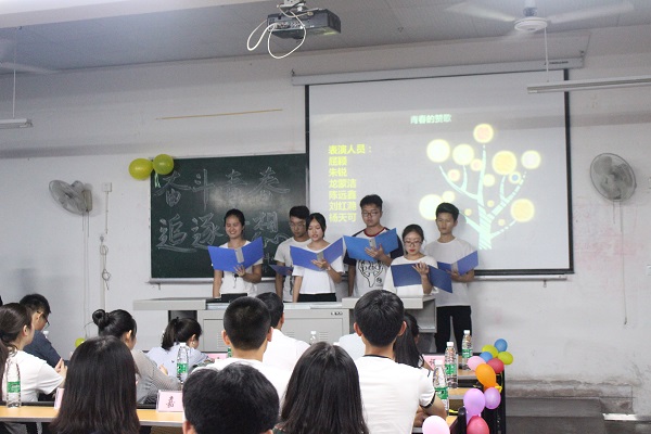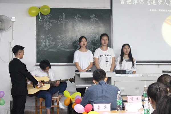 此次观摩会由2017级1班主持召开。观摩会伊始,全员起立合唱中国共青团团歌。随后主持人用ppt为大家初步介绍了此次观摩会的主题。观摩会中,节目形式多种多样,激情澎湃的诗朗诵、深情的吉他弹唱,富有深意的短片,引得台下掌声不断,一次次将晚会推向高潮。特别是在观看短片《田埂上的梦》后,同学们讲述了对“青春”“追梦”的理解。公司杨超老师也将自己的梦想分为三部分为同学们讲述,告诫同学们要认真学习,努力追逐自己的梦想。