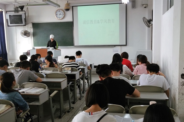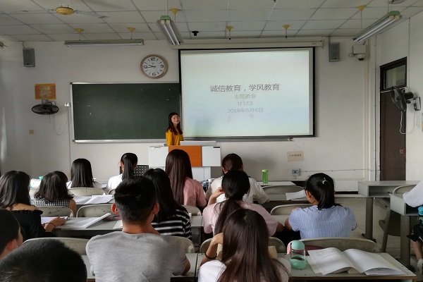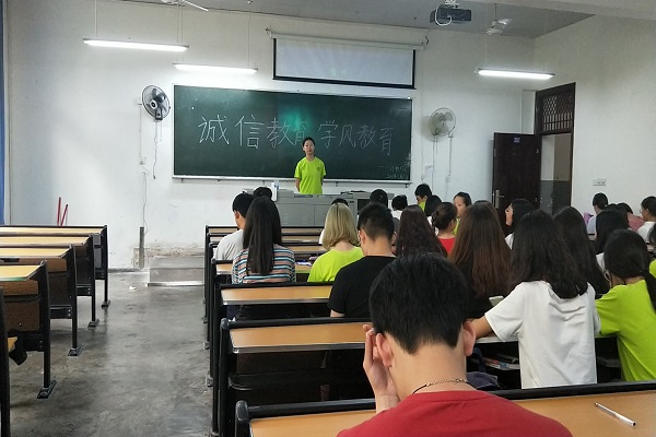为进一步加强考风、考纪,营造公平、公正、诚实、守信的考试氛围,促进公司学风建设。近期,公司又积极组织了全体员工在第一教学楼和第五教学楼开展了以“诚信教育,学风教育”为主题的班会。