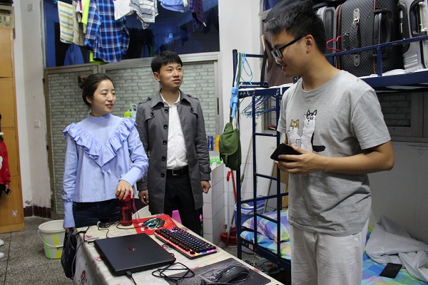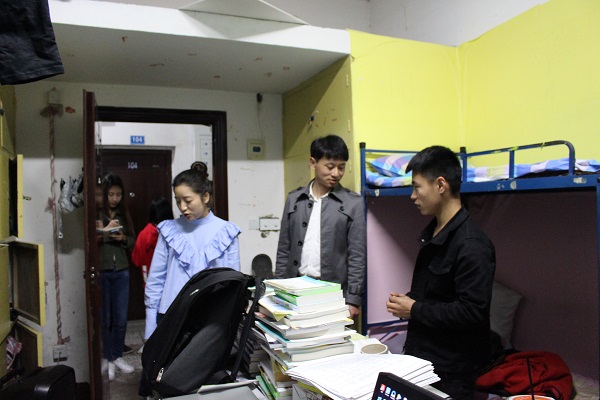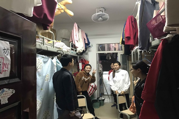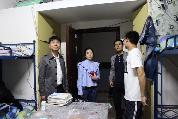 为深入了解公司员工寝室生活情况,营造一个良好的校园文化生活的氛围。3月22日晚,计科公司副书记王瑛杰,辅导员吴昊、王晓芸、杨超以及各班班主任,深入员工寝室并检查寝室卫生及安全情况;同时与同学们进行了亲切的交流。