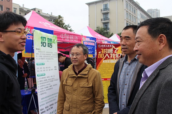 2018年太阳成集团tyc33455cc的春季双选会是公司毕业生就业的咨询盛宴。3月29日,双选会在天一广场隆重举行。虽然寒风瑟瑟,会场上却依然一片火热。上午九点,公司经理刘益和,党总支书记徐大军,副书记王瑛杰,学工办老师吴昊、杨超、王晓芸亲临双选会现场,了解企业用人情况,并与毕业生进行亲切的沟通、交流。