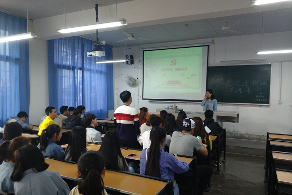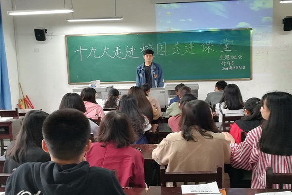 为提升公司员工对中国特色社会主义的宏伟蓝图的认识,以及使青年学子能够在学习中领会十九大精神核心要义和精髓。2018年3月26号前后,公司积极组织全体员工,分别在第一教学楼和第五教学楼开展了以“十九大走进校园,走进课堂”为主题的班会。