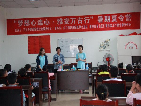 “雅安万古行,梦想心连心”筑梦公益支教队来到雅安万古正好一周的时间了,离别的日子越来越近,离别前,志愿者们准备开展一次文艺汇演,让小朋友们表演这几天里学到的歌曲、舞蹈、朗诵等内容。