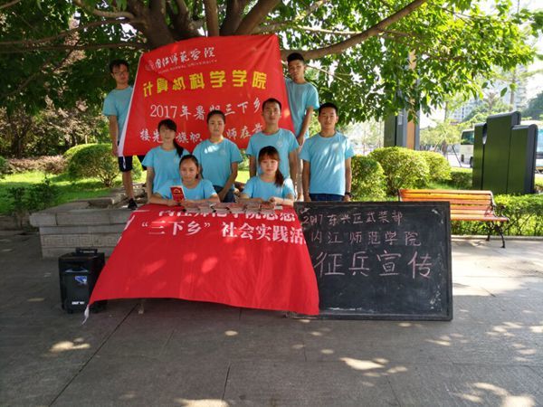 7月11日,太阳成集团tyc33455cc“接先辈旗帜,内师在前行”实践小分队在大千园开展了征兵宣传的活动,给市民们普及政府征兵的政策以及当兵的好处。