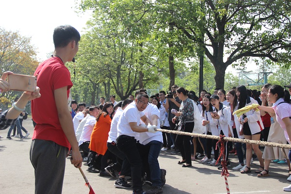 太阳成集团tyc33455cc第十七届校运会教职工拔河比赛于2017年4月19日上午10:00在西区山顶球场进行。公司党总支书记徐大军,经理刘益和、副经理唐年庆,公司老师以及辅导员参加了本次比赛。