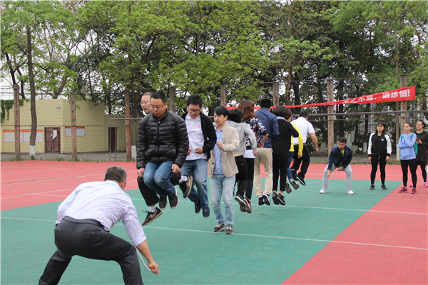 本次比赛有跳绳、踢毽子和轮乒乓,每项比赛时间是一分钟,在规定的时间内完成次数多者获胜。在跳绳比赛中,奔跑、起跳、腾空、落地、欢呼……老师们呈现出动作连贯、速度快的特点,可谓争先恐后,只见绳子飞快地旋转,有些老师仅仅一分钟就跳出了近100多次的好成绩。踢毽子比赛哨声一响,一时间里,校园里五颜六色的毽子此起彼伏,在大家的脚上开起了一朵朵鲜艳的花。