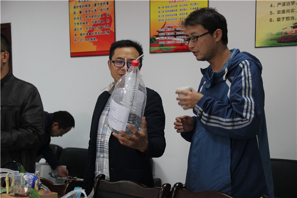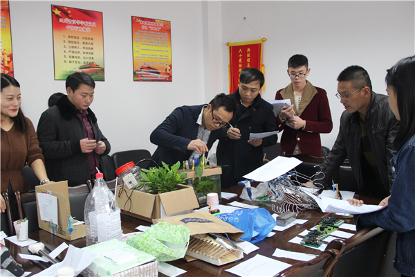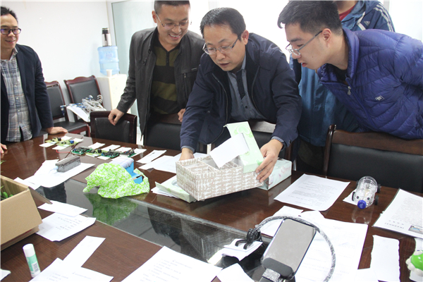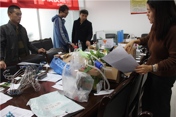 下午2时许,由计算机科学公司,建筑工程公司和生命科学公司相关专家组成的评审团,在新行政楼211办公室进行了“科技发明”大赛和“app制作”大赛的初赛筛选。首先进行的是 “科技发明”大赛作品的筛选。办公桌上琳琅满目的参赛作品:有精致漂亮的各种手工作品,创新的实用工具等。比如公司学子创作组合的各类飞行器、智能小汽车;还有生科公司创作的生态水缸、多功能太阳伞;以及物电公司的各种电子设备系统等等。让专家们看花了眼,对同学们的创意与才能赞叹不已,感受到了同学们对科技的热爱。