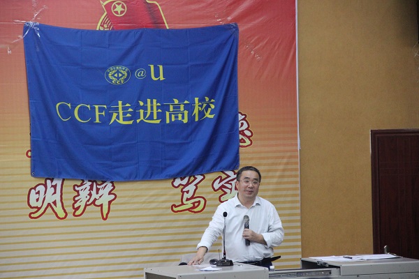 下午16时许,董教授开场以播放视频的方式,介绍了CCF的岁月历史及其存在的真正意义在于造福广大师生。董教授认为,课程评估是中国教学改革成败的关键,针对这个问题,他在BLOOM分类法和SOLO分类法的基础上,分析了我国教育出现的问题。他阐述了数学与计算机科学的区别,通过对“亚历山大的算法”的分析,他要求学子们了解并且掌握其解决方法。他结合“计算思维导论”课程和“计算机科学导论”实践,提出在大学第一门计算机课程的建设中,如何将课程评估与国际工程问题求解绑定在一起,如何提高计算思维能力,为员工今后的学习清除认知上的障碍。此外还介绍了微软产学合作项目—“计算思维结构”的课程情况。