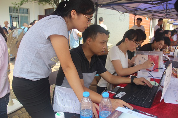 公司迎新工作如火如荼,到处都是忙碌的身影。团总支、员工会的学长学姐们给不厌其烦地新生、家长回答着他们提出的各种问题。不少员工会的学长学姐主动帮着拎行李,一路谈笑风生。新生细声地叫着“师兄师姐”,老生们也开心地介绍这、介绍那,当然还有我们可敬的志愿者们。迎新现场人头攒动,秩序井然。