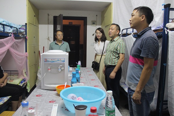 公司领导分别走访12栋、27栋男女生寝室。在走访检查过程中,徐书记主要对寝室布局、卫生情况以及用电安全等问题进行了检查,并进一步强调了同学们应严格遵守公司和公司的相关管理规定,严禁夜不归寝、打架斗殴等现象。还就同学们在寝室内吸烟、打牌和喝酒做出了严格的规定,对寝室卫生和物品摆放进行仔细的检查。同时,全面细致的检查了寝室内可能存在的安全隐患。走访期间,徐书记和刘经理与同学们进行了亲切的交流,对存在问题的寝室提出了整改建议,也了解了员工的生活状况和学习情况,并督促员工养成良好的作息习惯,提高防火防盗的意识,共筑一个和谐安全的生活环境。仔细询问他们的入住情况,了解新生来到新的地方在情绪、生活的变化;关注新生的寝室环境、安全等问题,提醒新生谨防寝室安全、人身安全、财产安全等系列问题,特别指出注意寝室上门推销等诈骗手段;最后公司领导在军训生活上做出深切关怀,提醒新生在军训时听从教官的指导、班主任的安排指挥,并在军训期间注意防暑、防晒伤、防跌伤等意外情况。