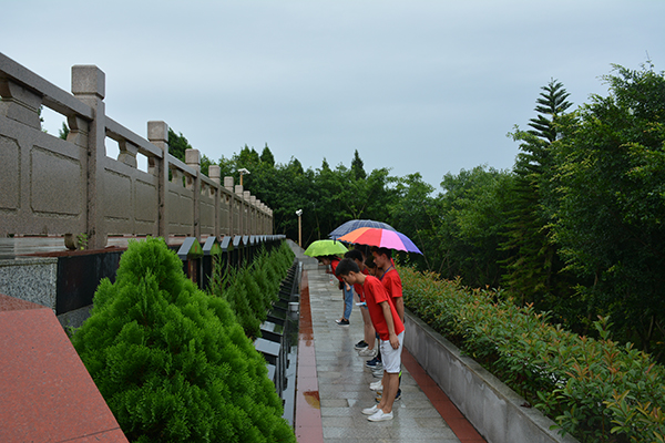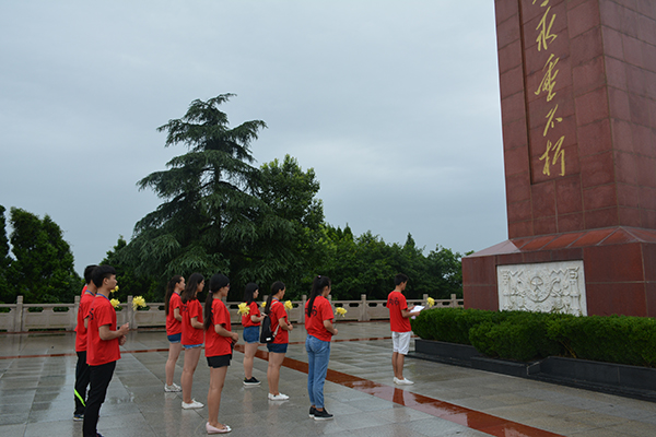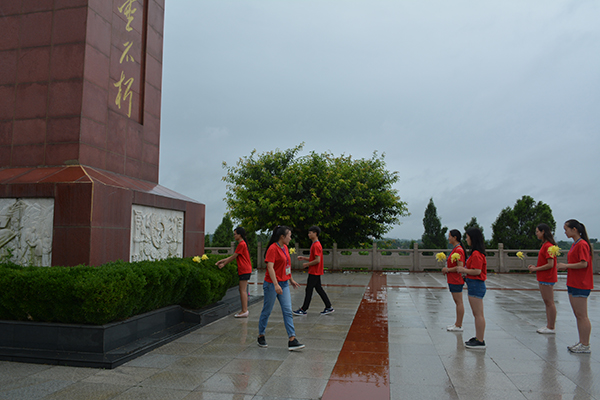 清明雨浥千年思念, 翠暖松寒万代永存。7月18日上午,太阳成集团tyc33455cc计算机科学公司“齐学党章,共做先进”党员宣传服务队12名同学坐车来到位于东兴区靖民镇的烈士陵园,开展扫墓活动。虽然天空下着蒙蒙的细雨,虽然坐车坐了半个多小时,大家却依然精神饱满地来到了陵园。