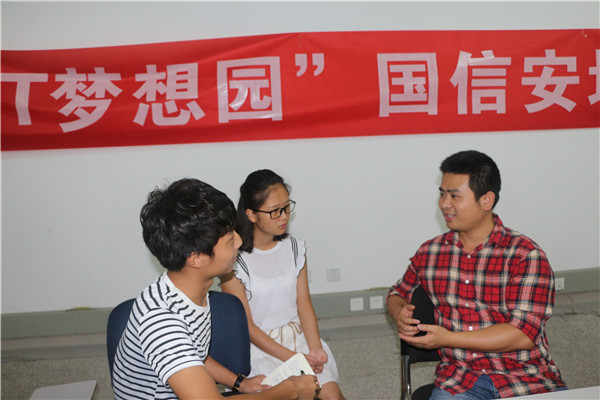国信安三下乡——IT梦想园的队员们就专业问题询问了项目经理。项目经理提到物联网(Internet Of Thing )属于新兴专业,主要强调物与物之间的连接,软件与硬件相结合,2010年开始,个别高校开始组建教学,由于刚开始开课会有些在教育方面的不成熟,但是随着时间的推移,通过不断的摸索,慢慢抓住了教学的主干。物联网专业国家都在对此加强重视,主要应用于医疗技术,高铁,农业,智能家居等,如果能够学好物联网,一个月9000+是没有问题的。对于物联网,经理建议我们学习软件方面,学习物联网要提前掌握JAvascript,JAVA,C/C++,传感技术等。