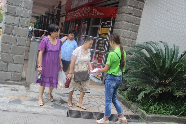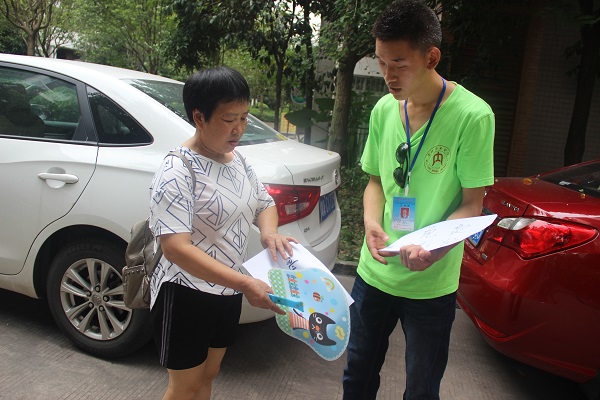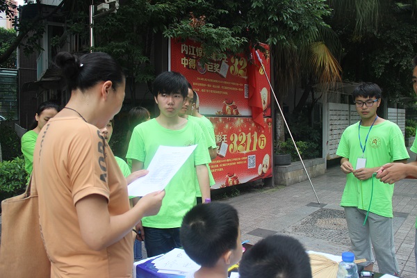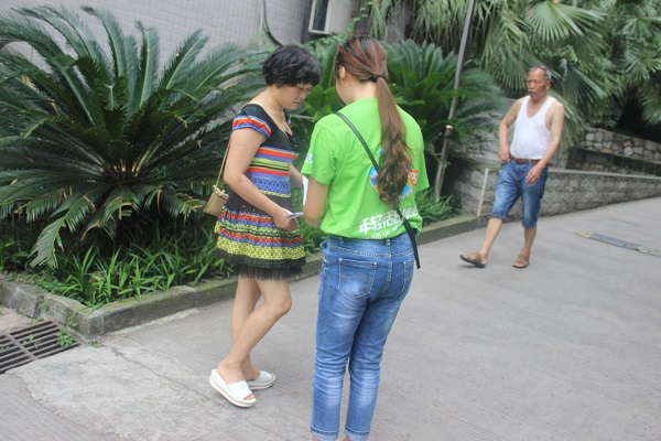 陌生的小区和陌生的居民,不过对于队员们来说早已习以为常,我们的服务点设在一棵大树下,树荫浓密,几缕稀疏的阳光照射下来,景色怡人,队员们在这样的环境下工作显得更有干劲!