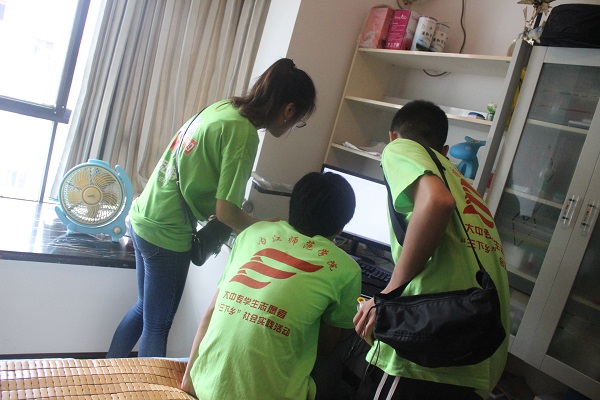 忙碌的生活对于我们来说以很正常,炎炎的烈日使我们身心疲惫,但是我们队员并没有因此后退,我们谨记本次活动的宗旨,不辞艰辛,做到“义务维修行,温暖他人心”。队员们用辛勤的汗水挥洒自己的青春,来来往往,我们大家各尽所能的为大家服务,后来,我们偶遇了内江日报的记者,交谈甚欢,谈论中得知他们的电脑也有些问题,于是我们派出一支小分队,去帮忙维修电脑。我们队员凭借着自己精湛的技术解决了问题。修好之后,记者给出了高度评价,不仅非常认同我们的活动,还非常认可我们的技术,并且同意帮助我们宣传电脑方面的小知识,还答应帮助我们宣传活动。这是一次非常成功的出行,如同今日的阳光一般,灿烂并且光芒四射。