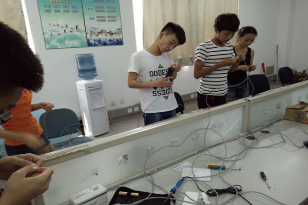 下午2点,物联网小分队在项目经理的安排下用水晶头、双绞线、钳子制作了网线。大家的积极性很高。软件工程小分队在项目经理的带领下,每个项目团队开始用Axure RP快速原型设计工具来制作一个网站。由于网站的网页比较多,所以每个人都有相应的分工。这样一来,团队精神和团队默契就显得至关重要了。