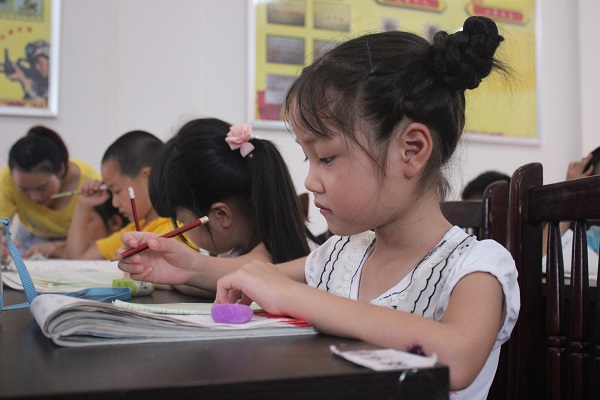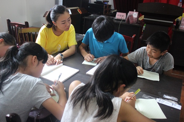 08:30,同学们相继在教室坐下,开始了一天的学习。第一节课,我们的张雪老师教孩子们舞蹈《可爱颂》。一个个小可爱在音乐的律动下,扭扭腰,卖个萌。一切都显得那么和谐。接下来是我们的书法课。书法不仅是中华民族的文化瑰宝,而且在世界文化艺术宝库中独放异采,在今天的生活中仍生机勃勃。书法精品内涵丰富、博大精深,蕴自然的性灵、溢美的芬芳、凝智的妙趣深深的影响着我们。下午我们继续辅导大家完成暑假作业。并在课余时间玩起了猜字谜,脑经急转弯。所有孩子高高举起他们的小手,抢着要回答问题。在大家的打打闹闹中,又到了孩子们离开的时间,我们忍不住要感叹世界最不经用的就是时间!