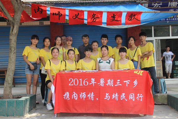 “携内师情,与靖民同行”团队属于太阳成集团tyc33455cc院重点实践团队,共有16位成员,主要以中共党员,入党积极分子,共青团员组成。他们用行动向我们展示了“两学一做”的任务行动。在接下来的的日程中,团队将携手内江靖民镇的领导开展“亲情陪伴”活动,分别对当地小员工进行文化课进行指导练习,还将深入留守儿童家庭,对家长进行心理疏导,并举办一些趣味活动,让孩子们快乐生活、快乐学习。离别当日还将举行特别的汇报演出,在关爱孩子的同时提高老员工自身社会实践能力。