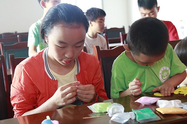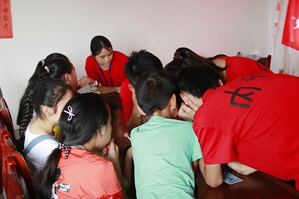 第一天的经历让大家都有些疲惫,经过一晚上的休息调整后,志愿者们早早的起来了,年轻人的朝气蓬勃在这群人身上展现的淋漓尽致,他们将用热情去完成的这次活动。活动分两队进行。九点正式上课,红草村的队伍七点刚过就到了上课的教室,而八点半之前15个孩子已经全部到场,在上课前大家一起玩了“真心话大冒险”的游戏,笑声很快的充满了整个教室。第二天红草村和九间楼村的孩子们分别观看了前三年支教队伍与孩子们的合影照剪辑的VCR,进行了“在黑暗中寻找梦想”的作画活动,并且做了超轻黏土的作品,还拍了视频给前三年支教队伍的哥哥姐姐们。