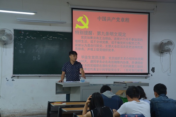 最后转正预备党员宣誓,他们声音高亢激昂:遵守党的章程,遵守党的记录……久久回荡在教室里,真正展现出了对党的崇高敬意。员工党支部书记李倩倩、吴昊老师对大会进行了总结,表示希望以后在各种有益活动中多看到党员身影,更多的人投身到党的事业:对党的认识更加明确,对党的基本知识更加了解,入党动机端正,对共产主义信念更加坚定。