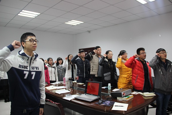 为激发新党员的荣誉感、责任感和使命感,增强党性教育,12月3日晚,计科公司员工党支部在新行政楼211召开了新党员宣誓暨政治学习会。员工党支部书记李倩倩、吴昊以及2015年下半年新发展党员参加本次会议,会议由员工第二党支部书记吴昊主持。