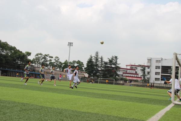 9月22日至23日两天,公司在绿茵场上举办足球比赛,此次比赛共有四支队伍参赛,包括大三组、大二组、大一AB组,在裁判的哨令下,比赛争夺战激烈开始,人在赛场上飞奔,球在脚下呼呼生风,左闪右躲,好不灵巧!我们的守门员们半蹲着腰,两眼紧紧地盯着球,生怕有一丁点儿的疏忽!不好!对方一个斜射,球飞扑另一队的球门,大家都紧张的张大了嘴巴,全场一片寂静,只见守门员一个飞扑,稳稳地抱住了球!好险!救球成功!嘟——!各班的同学们都来到球场,为班级加油助威!加油声一声接着一声,一浪超过一浪,一阵盖过一阵!点球!射!旋转!进!成功了!球进了!大家欢呼起来,拥抱在一起,而此时守门员仍双手抱球,保持匍匐状,脸上却露出笑容。这一刻我们的心飞了,只会挥动着彩旗和我们满眼的泪水!