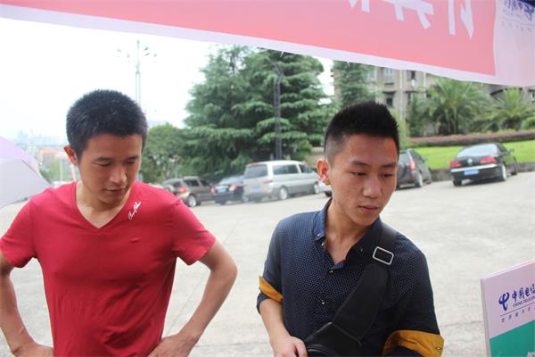 今天是新生报名的第三天,是迎新工作的最后结尾,从早上7点起,志愿者们就早早的来到了新生接待处,各自履行各自的工作,随着新生的到来,他们也都开始忙碌起来,有的在校门口引导员工和家长去领取流程图,有的则带领他们到报名处和寝室入住,还向他们介绍了教学楼,食堂,商业街等一些必去的地方。