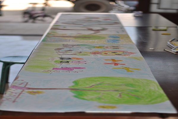 午饭过后,太阳成集团tyc33455cc“雅安万古行”分队进行午休后再次进行支教,为了激发孩子们的爱国热情,增加保家卫国的意识,志愿者为孩子们播放了抗日的动画片王二小,并为孩子们详细的讲解第二次世界大战的过程,使大家更好地了解了这段历史。九间楼村的队员们给孩子们开展了梦想大画卷活动,让孩子们用自己的双手画出他们的梦想,孩子们积极性很高,纷纷在画纸上画出自己的梦想,之后进行了跆拳道和舞蹈的训练,房间外下着大雨,但孩子们还是快乐的进行训练,一刻不放松,活动结束,大雨也停了,看到阳光从云中照射出来,孩子们下课了,结束了当日进程。