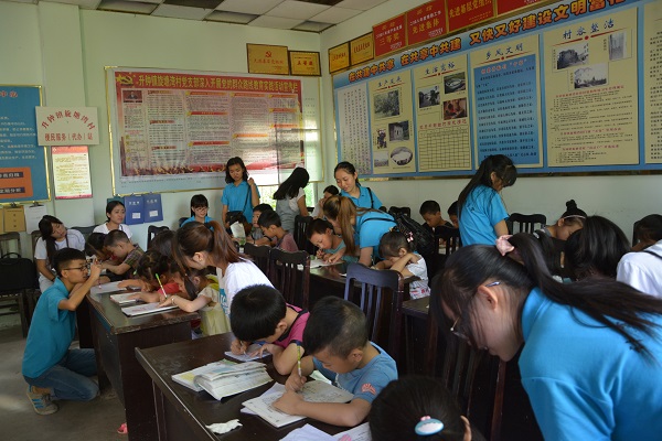 具体的社会实践中,队伍根据采用多种活动结合形式,调研,看望空巢老人,辅导升钟镇周边小孩做作业,在上课之余,又不乏活动,唱歌,折纸,玩游戏等穿插在课堂中,让孩子们劳逸结合。我们活动的顺利开展也得益于当地村民的支持,开始辅导小孩子时,还担心来得少,结果却在意料之外,孩子越来越多,“教室”显然已容纳不下。