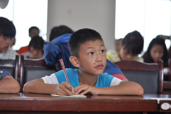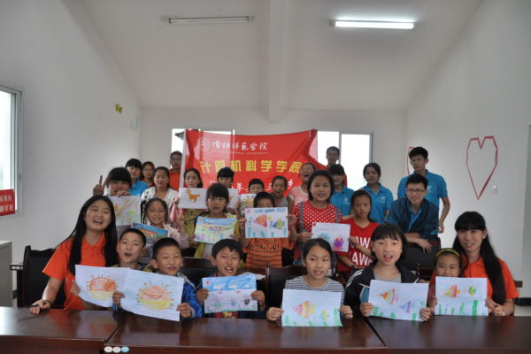吃过午饭,队员稍作休息,下午3点又来到孩子们的身边,首先为他们解决了一些学习上的问题,接着应用心理学专业的同学为他们开展了屋树人游戏,要求他们将自己心里最美的树画在纸上,并从这些画中分析他们的性格,随后,志愿者们又教给孩子们歌曲《虫儿飞》,和简单的舞蹈动作。在有计划地进行后,红草村的志愿者们和孩子们完成了今天的行程。而队伍的另一边,同样进行的课程辅导后进行画画和写信的活动,让他们给父母写了一封信作为作业,便结束了当日的进程。