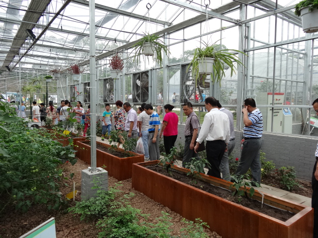 在位于岗石村的农业科普示范基地,游人如织,菜蔬满园,繁花似锦。基地负责人、市农科院副经理唐卫东、科技人员汪军等向大家介绍了基地成立9个月以来的快速发展过程,特别向大家介绍了现代化的生产流程,介绍了现代信息技术和农业生产的初步结合。博士团成员在现场和农科院专家就“智慧农业”建设,就校地合作,产研结合进行了初步探讨,并约定时间再商合作事宜。
