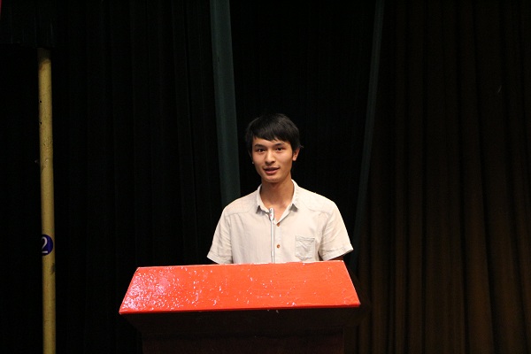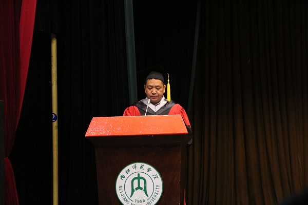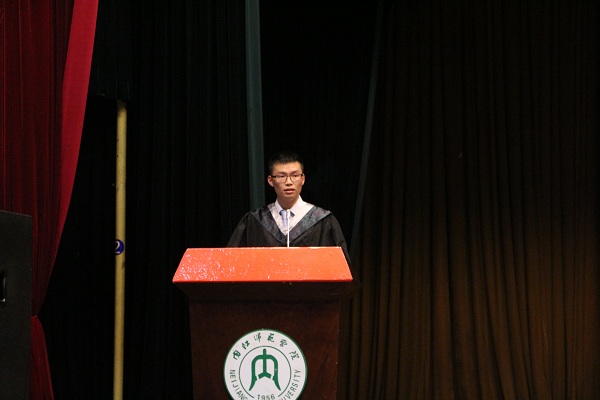来自11级3班的蒲勇作为毕业生代表发言。首先,他代表全体毕业生表达对母校的不舍,感谢母校多年的精心培养教育,感谢各位领导及老师的教诲,感谢身边朋友的帮助。而后,总结大学四年的得失,表明自己对未来的态度及立场,表现自己对未来的憧憬,他们定将不畏艰险,怀着满腔热情投入到新征程中。随后,13级2班罗伟作为在校毕业生代表发言,今天,是毕业的日子,又是搏击长空的起点。他代表全体在校生表示对师兄师姐最诚挚的祝福,也表明自己的态度,请师兄师姐放心,请公司放心,请老师放心。他表明,在内师未来的日子里,会以更加饱满的激情投入学习及工作中。
