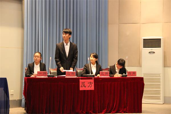 晚上7点整,组织观摩会正式开始。在主持人短暂的致辞后,双方辩手上台自我介绍,辩论正式开始。
