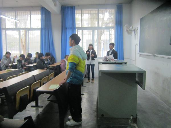 14级4班全体员工在第一教学楼201开展了“祖国在我心”团组织生活活动。活动分三项进行,活动第一项“唱团歌”,全体成员起立严肃庄重演唱《光荣啊!中国共青团》;活动第二项“节目表演”,同学踊跃上台表演,如歌曲《精忠报国》,这不禁增添了我们的爱国之情。13级1班在第二学术报告厅组织了“艰苦奋斗,携手腾飞”的主题活动,让同学们明白了,在人生道路上,不仅要有理想,更加要有梦,中国梦需要每个人的努力。13级2班在班长罗伟的主持中顺利开展,组织委员的演讲更是将班会带入高潮,在欢歌笑语中,大家认识到了祖国的腾飞与跨越,在动听的朗诵中,同学们结束了这次的主题班会。13级4班通过演讲、唱歌、看教育片等多样的方式,让同学们全方位的感受到了祖国就在你我的心中。13级5班主要通过宣讲有关行为习惯的注意事项,来让大家树立整洁优良的作风,从小事做起,时刻把祖国放心中。