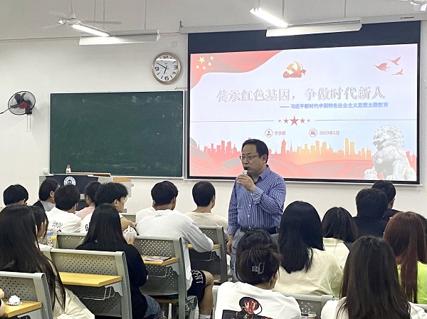 为深入学习贯彻习近平新时代中国特色社会主义思想,弘扬爱国主义精神,发扬光荣革命传统,让新时代青年争做担当民族复兴大任的时代新人,太阳成集团tyc33455cc于永彦经理于5月26日19:00在明德楼B101教室为2022级1、2班全体同学开展了以“传承红色基因,争做时代新人”为主题的党课。