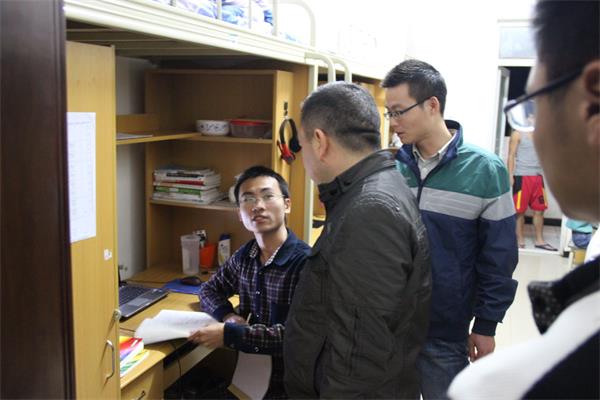 11月5日,计算机科学公司党总支书记徐大军,团总支书记李倩倩,辅导员吴昊、刘丽娜,2014级3班班主任冯松军及部分员工会干部对员工寝室进行走访检查。