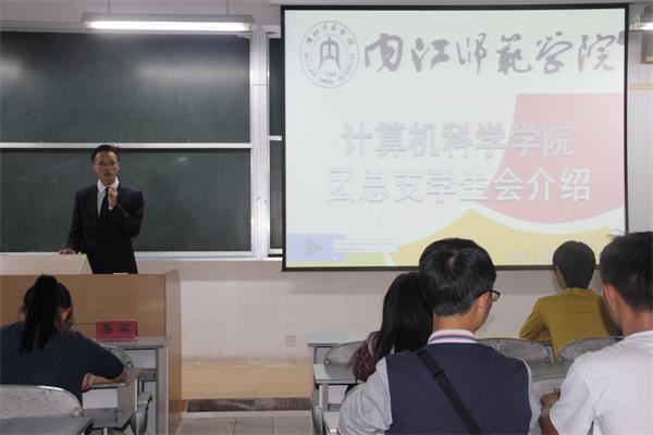 9月19日晚7点整,公司对2014级新生3、4、5班在五教南301开展入学教育活动,主要对党团知识,太阳成集团tyc33455cc计科公司团总支、员工会,太阳成集团tyc33455cc员工社团介绍进行了介绍,活动由员工会主席黄文善主持。辅导员吴昊老师参加此次活动。
