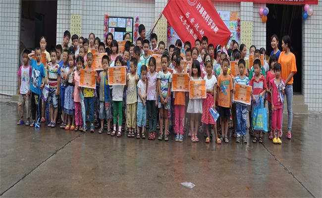 10点30分,暑期三下乡活动结束仪式开始,为优秀小朋友们颁发奖状、学习用具、娱乐玩具。孩子们灿烂的笑容挂在脸上直到志愿者们离开,为志愿者们颁发励志奖品,志愿者们笑容挂在脸上,不舍放在了心里。