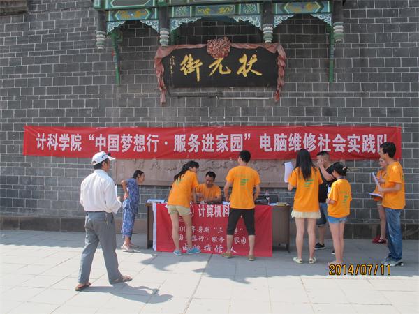 吃了饭之后,我们没有片刻休息,为了把我们等车的时间弥补回来,我们又投入到工作中。但是中午再加上如此炙热的阳光,哪里会有人行走在路上呢?可这对于我们不是问题,队员们不畏烈日,拿着宣传单在烈日下奔跑于各商铺。在社区大树下乘凉的爷爷奶奶们,队员们也上前去与他们交流的过程中发现,电脑是没有代沟的。有的奶奶们还会利用电脑看电视剧,一位老爷爷还告诉我们,用电脑看电视剧没有广告的。信息化的时代,电脑的普及,让人们的生活更加便利。